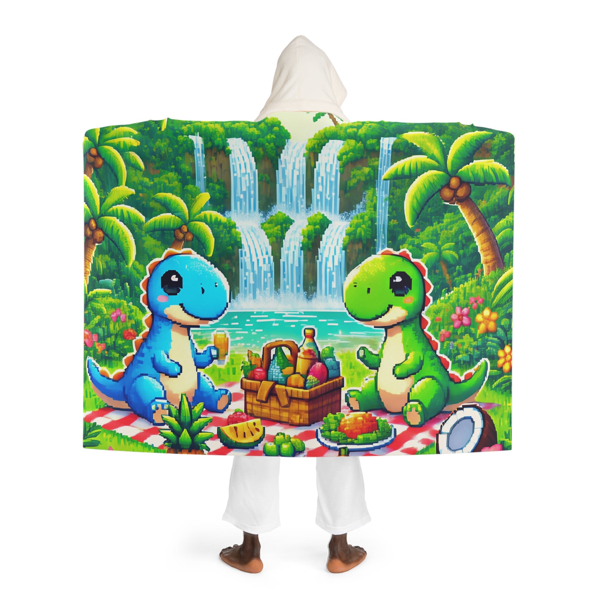Süße Sherpa-Fleecedecke mit Kapuze und 2 Dino-Motiven