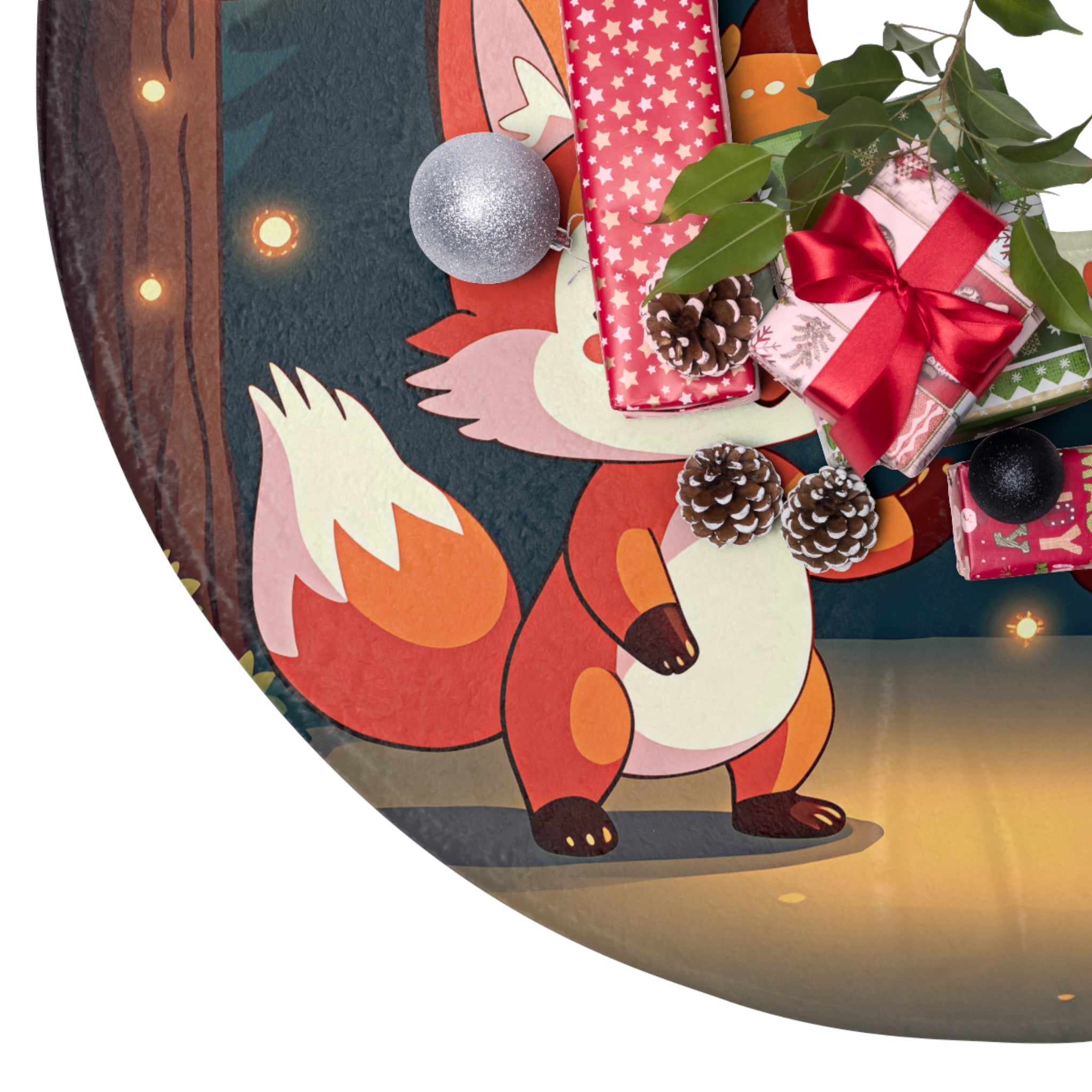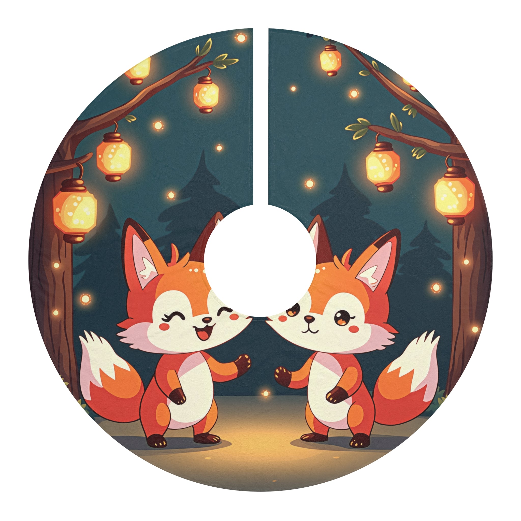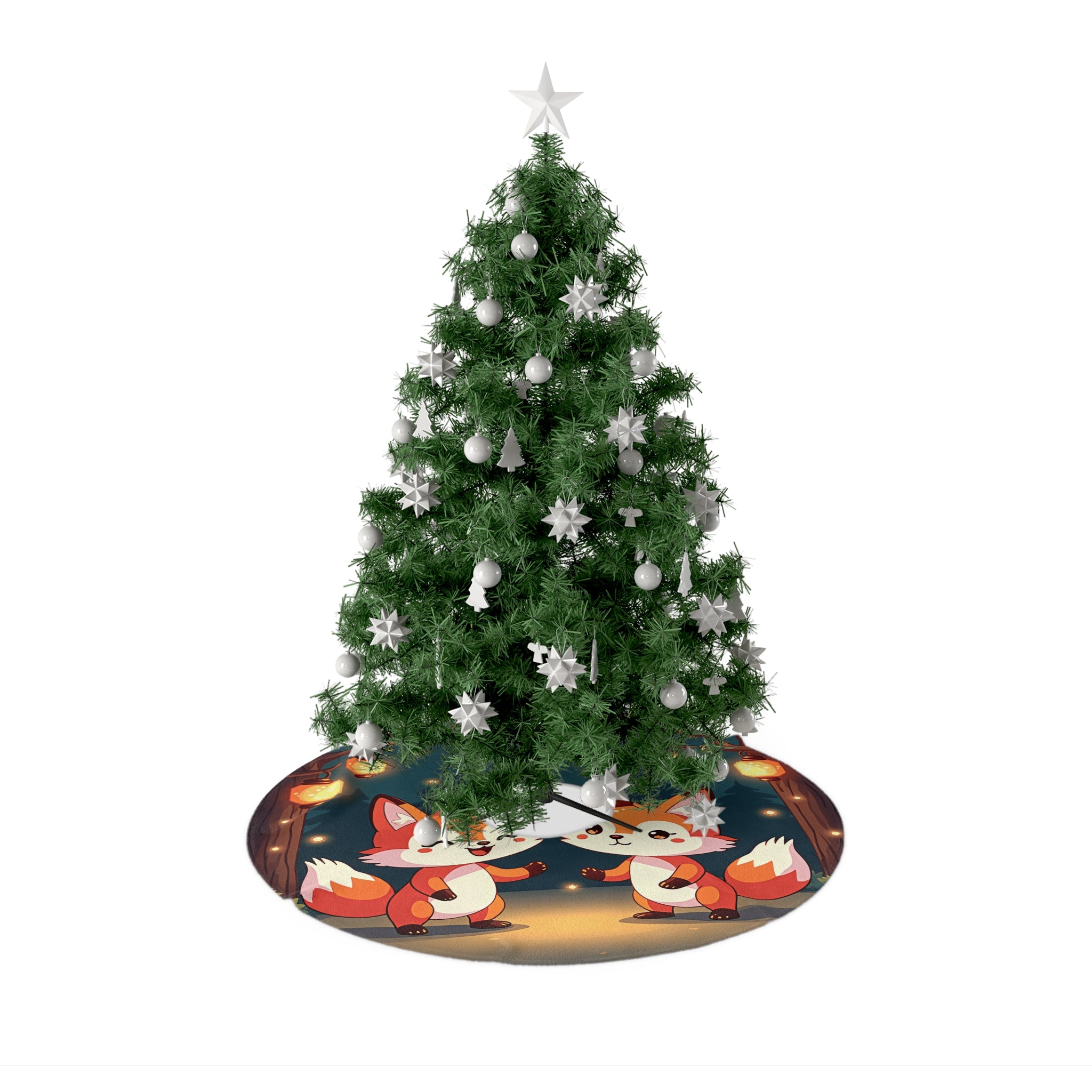 Cute 2 Fox design themed Christmas Tree Skirts