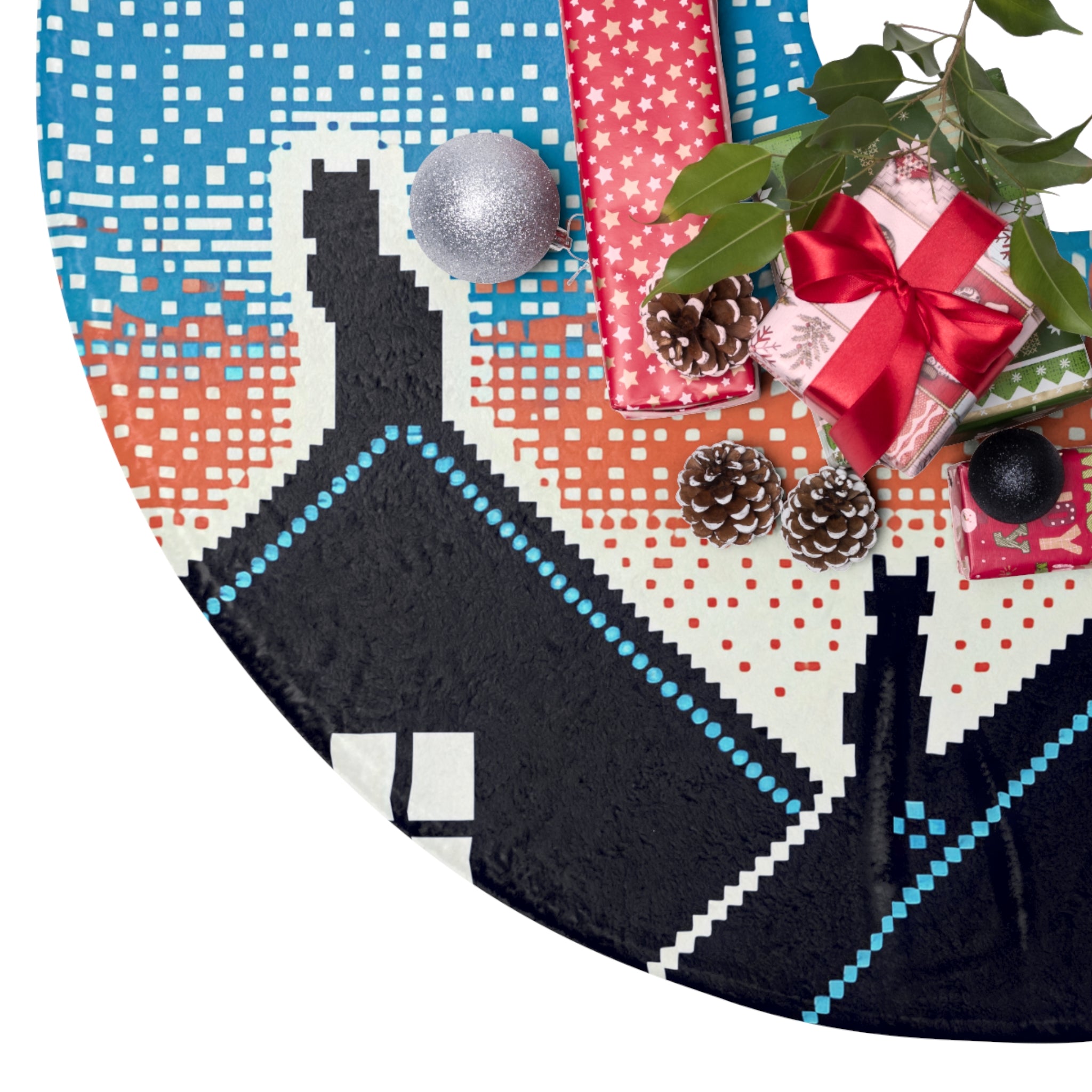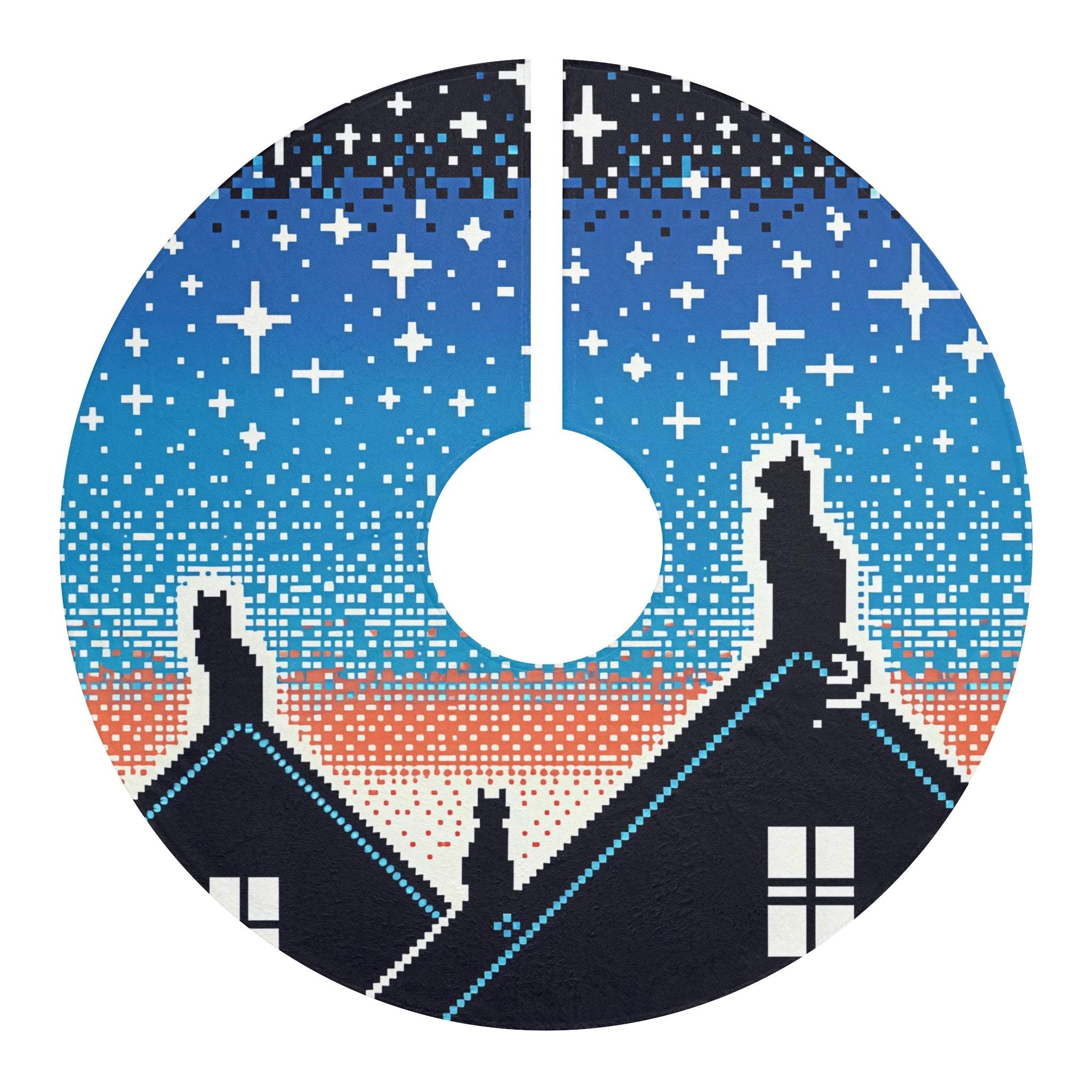 Cute Cat in night design themed Christmas Tree Skirts
