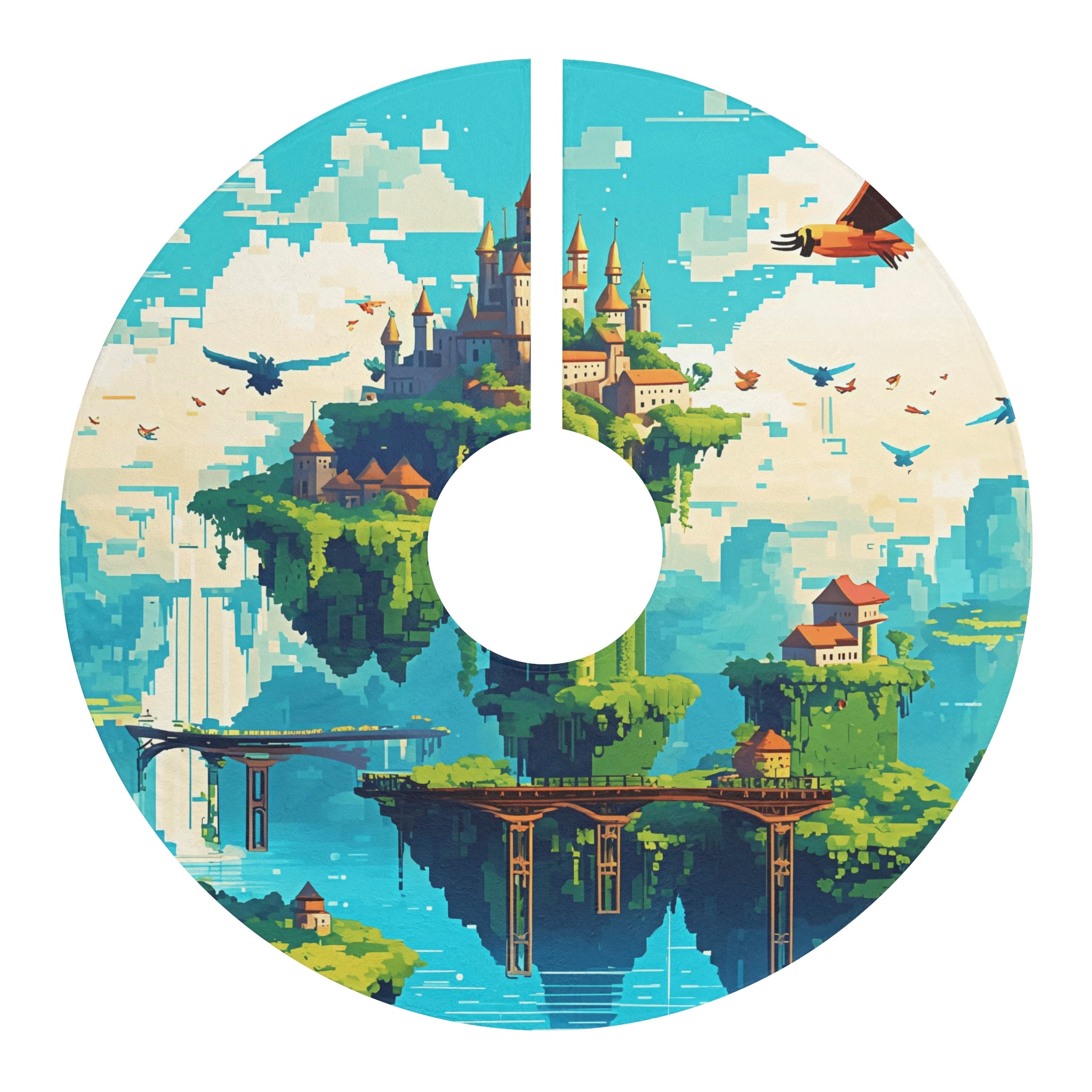 Scenery of Floating Islands design themed Christmas Tree Skirts