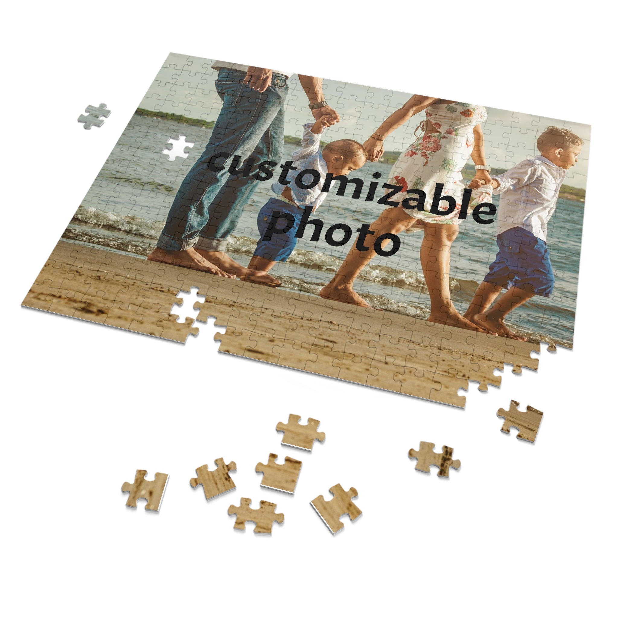A handcrafted puzzle that turns a treasured photo into a warm, hands-on moment. Thick, pre-die-cut chipboard pieces lock together with satisfying precision and a glossy finish that brings colors to life. The finished image also appears on a sturdy white metal tin and matching full-bleed box, so the scene is easy to recreate and beautiful to store or bring along. Choose from multiple piece counts to match the time you want to spend — from a quick 30-piece afternoon to a focused 1000- or 2000-piece evening — and expect crisp prints and uniformly cut pieces that make assembly smooth and rewarding.